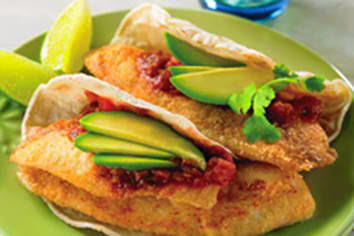 (2)In shallow dish, place taco seasoning. Coat both sides of fish with taco seasoning. In 12-inch nonstick skillet, heat oil over medium-high heat. Cook fish in oil 6 minutes, turning once, or until fish flakes easily with fork. Divide fish into 8 pieces.